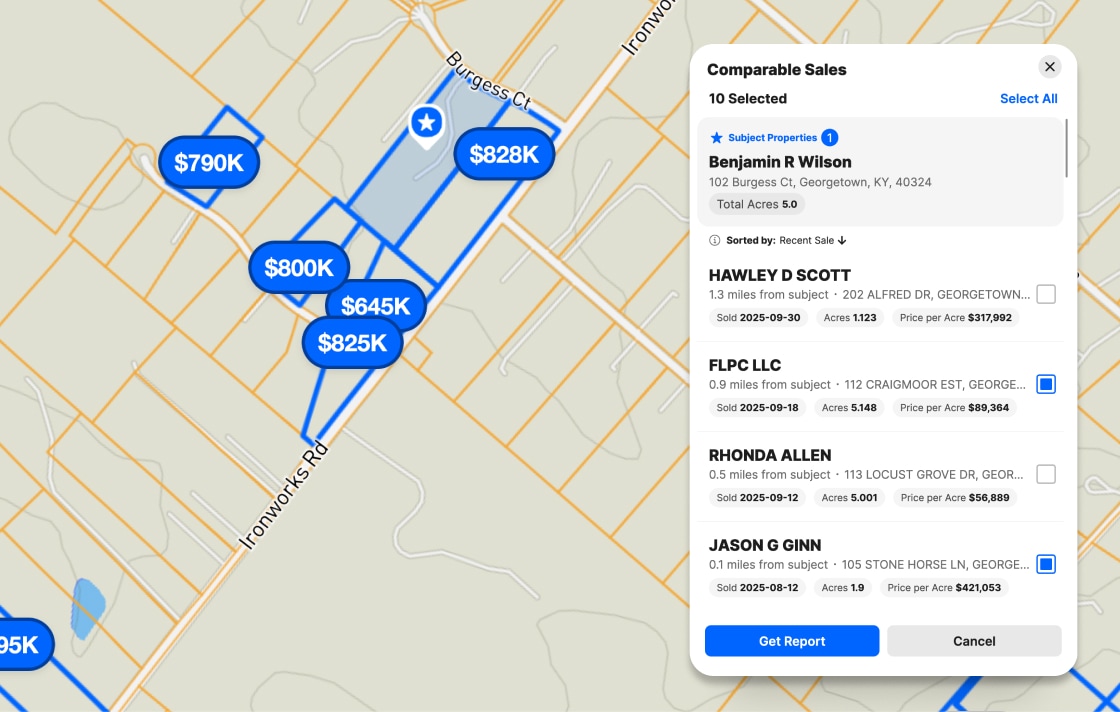The Comparable Sales tool helps my clients see the value of a property immediately. Instead of overwhelming them with raw data, Land id turns comps into a clear, visual report that builds trust and speeds up decision-making. Y’all have knocked it out of the park!"
