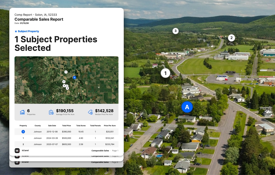 When other tools fall short, Land id takes the hassle out of pulling comps. Using intelligent similarity matching, Land id automatically surfaces the most relevant comparable properties. View a sample report.